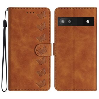 Για το Google Pixel 6a Επτά πεταλούδες ανάγλυφη δερμάτινη θήκη τηλεφώνου (καφέ)