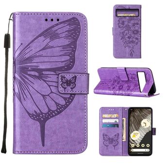 For Google Pixel 8 Pro Embossed Butterfly Leather Phone Case(Light Purple)