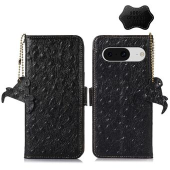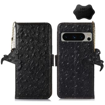 Θήκη τηλεφώνου από γνήσιο δέρμα με σχέδιο στρουθοκάμηλου για Google Pixel 8 Pro, με προστασία RFID (Μαύρο)