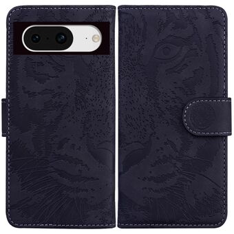 Θήκη τηλεφώνου από δέρμα με σχέδιο Tiger Embossing για Google Pixel 8 (Μαύρο)
