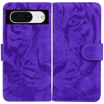Θήκη τηλεφώνου από δέρμα με ανάγλυφο σχέδιο πεταλούδας για Google Pixel 8 (Σκούρο Μωβ)