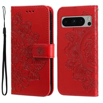 Για το Google Pixel 8 Pro λουλούδι ανάγλυφο μοτίβο δερμάτινη θήκη τηλεφώνου (κόκκινο)
