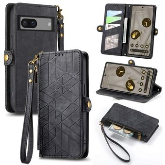 Για το Google Pixel 6 Γεωμετρικό φερμουάρ πορτοφόλι πλευρά πόρπη δερμάτινη θήκη τηλεφώνου (μαύρο)