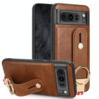 Για Google Pixel 8 Wristband δέρμα πίσω θήκη τηλεφώνου (καφέ)