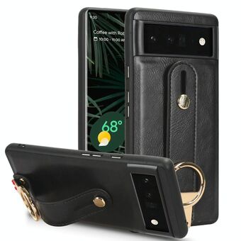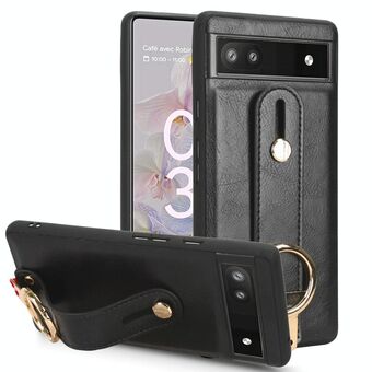 Για το Google Pixel 6 Wristband δέρμα πίσω θήκη τηλεφώνου (Μαύρο)