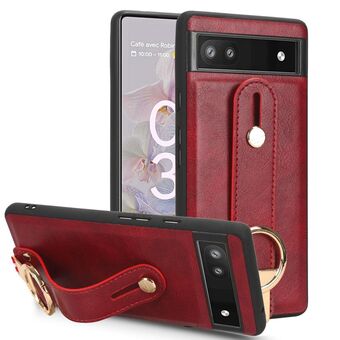 Για το Google Pixel 6 Wristband δέρμα πίσω θήκη τηλεφώνου (κόκκινο)