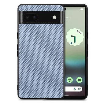 Θήκη τηλεφώνου με υφή ανθρακονήματος και δερμάτινη πλάτη για Google Pixel 6a (Μπλε)