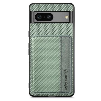 Για το Google Pixel 6 Carbon Fiber μαγνητική κάρτα τσάντα υπόθεση τηλεφώνου (πράσινο)