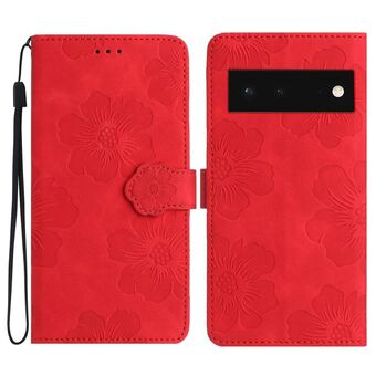 Για το Google Pixel 6 λουλούδι ανάγλυφο μοτίβο δερμάτινη θήκη τηλεφώνου (κόκκινο)