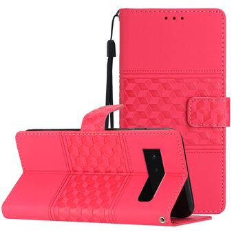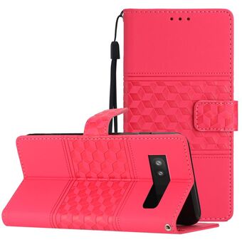 Για το Google Pixel 7a Diamond Embossed Skin Feel Leather Phone Case με κορδόνι (κόκκινο)