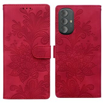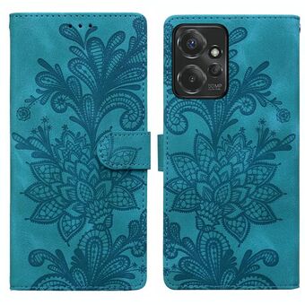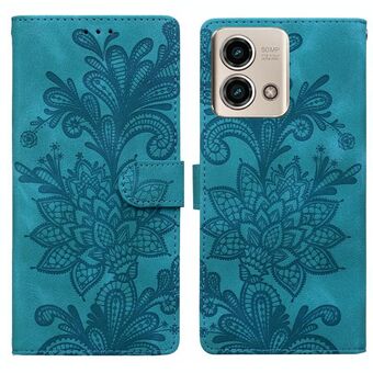 Θήκη κινητού τηλεφώνου με μαγνητικό κούμπωμα και λουρί καρπού από δερματίνη (PU) με δαντελένια λουλουδάτα ανάγλυφα για Motorola Moto G 5G 2023 (Πράσινο)