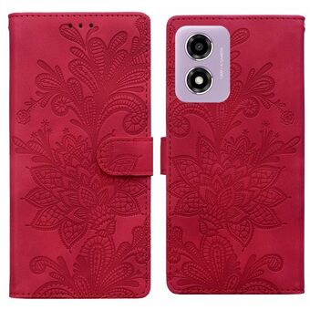 Θήκη κινητού τηλεφώνου Motorola Moto G Play 2024 με δαντελένιο floral ανάγλυφο, μαγνητικό κούμπωμα και λουρί καρπού (Πράσινο)