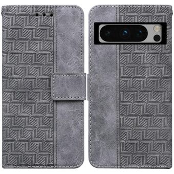 Για το Google Pixel 8 Pro Γεωμετρική ανάγλυφη δερμάτινη θήκη τηλεφώνου (γκρι)