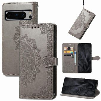 Για το Google Pixel 8 Pro Mandala λουλούδι ανάγλυφη δερμάτινη θήκη τηλεφώνου (γκρι)