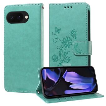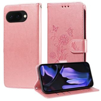 Θήκη τηλεφώνου δερμάτινη με ανάγλυφα σχέδια πεταλούδας και λουλουδιών για Google Pixel 9a (Χρυσό)