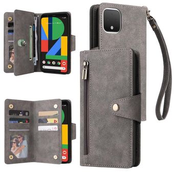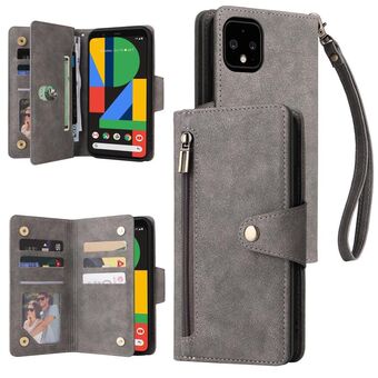 Για το Google Pixel 4 Rivet πόρπη 9 κάρτες τρεις φορές δερμάτινη θήκη τηλεφώνου (γκρι)