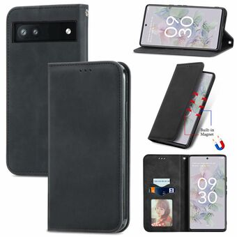 Για το Google Pixel 6a Ρετρό δέρμα αίσθηση μαγνητική οριζόντια Flip δερμάτινη θήκη τηλεφώνου (Μαύρο)