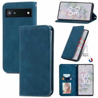 Για το Google Pixel 6a Ρετρό δέρμα αίσθηση μαγνητική οριζόντια Flip δέρμα τηλέφωνο υπόθεση (μπλε)