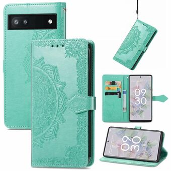 Για το Google Pixel 6a Mandala λουλούδι ανάγλυφο Flip δερμάτινη θήκη τηλεφώνου (πράσινο)