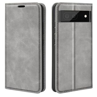 Για το Google Pixel 6a Ρετρό δέρμα αίσθηση μαγνητική οριζόντια Flip δέρμα τηλέφωνο υπόθεση (γκρι)