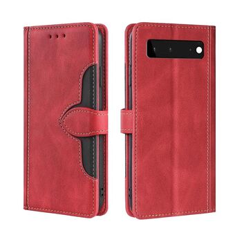 Για το Google Pixel 4a Ρετρό υφή αντίθεση χρώμα πόρπη οριζόντια Flip δερμάτινη θήκη τηλεφώνου με θήκη (κόκκινο + μαύρο)