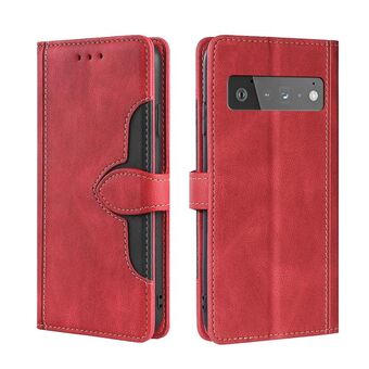 Για το Google Pixel 5 Ρετρό υφή αντίθεση χρώμα πόρπη οριζόντια Flip δέρμα τηλέφωνο υπόθεση με θήκη (κόκκινο + μαύρο)