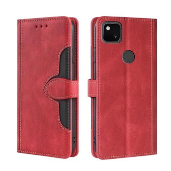 Για το Google Pixel 4a Skin Feel Straw Hat μαγνητική πόρπη οριζόντια Flip δερμάτινη θήκη με υποδοχή & υποδοχές καρτών & πορτοφόλι (κόκκινο)
