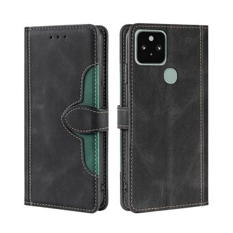 Για το Google Pixel 5 Skin Feel Straw Hat Μαγνητική πόρπη οριζόντια Flip δερμάτινη θήκη με θήκη & υποδοχές καρτών & πορτοφόλι (μαύρο)