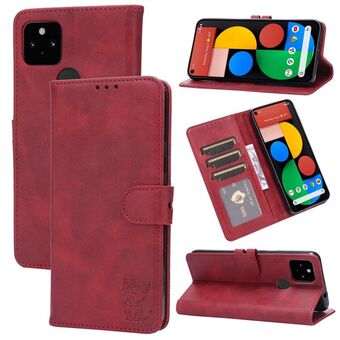 Για το Google Pixel 5 XL ανάγλυφο Happy Cat μοτίβο οριζόντια Flip δερμάτινη θήκη με κάτοχο & υποδοχές για κάρτες & πορτοφόλι (κόκκινο)