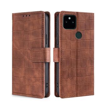 Για το Google Pixel 5A Skin Feel Crocodile Texture Μαγνητικό κούμπωμα οριζόντια Flip PU δέρμα υπόθεση με κάτοχο & υποδοχές καρτών & πορτοφόλι (καφέ)
