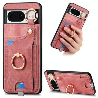 For Google Pixel 8 Retro Skin-feel Ring Card Bag Phone Case with Hang Loop(Pink)