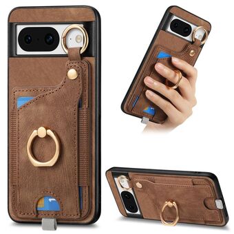 For Google Pixel 8 Retro Skin-feel Ring Card Bag Phone Case with Hang Loop(Brown)