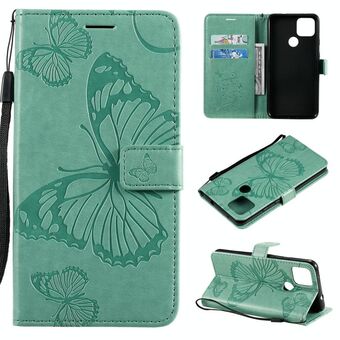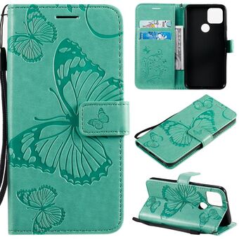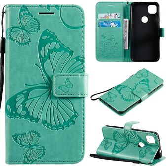 For Google Pixel 4A 5G 3D Butterflies Embossing Pattern Horizontal Flip Leather Case with Holder & Card Slot & Wallet & Lanyard(Green)