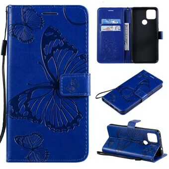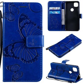 For Google Pixel 4A 5G 3D Butterflies Embossing Pattern Horizontal Flip Leather Case with Holder & Card Slot & Wallet & Lanyard(Blue)