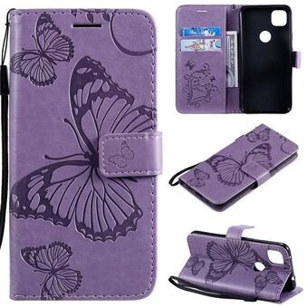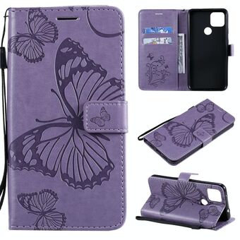 For Google Pixel 4A 5G 3D Butterflies Embossing Pattern Horizontal Flip Leather Case with Holder & Card Slot & Wallet & Lanyard(Purple)