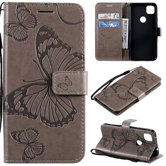 For Google Pixel 4A 3D Butterflies Embossing Pattern Horizontal Flip Leather Case with Holder & Card Slot & Wallet & Lanyard(Grey)