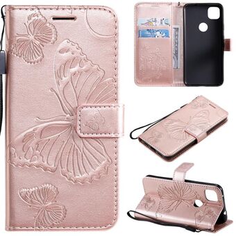 For Google Pixel 4A 3D Butterflies Embossing Pattern Horizontal Flip Leather Case with Holder & Card Slot & Wallet & Lanyard(Rose Gold)