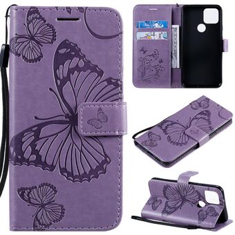For Google Pixel 5 3D Butterflies Embossing Pattern Horizontal Flip Leather Case with Holder & Card Slot & Wallet & Lanyard(Purple)