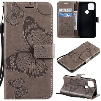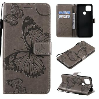 For Google Pixel 4A 5G 3D Butterflies Embossing Pattern Horizontal Flip Leather Case with Holder & Card Slot & Wallet & Lanyard(Grey)