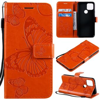 For Google Pixel 5 3D Butterflies Embossing Pattern Horizontal Flip Leather Case with Holder & Card Slot & Wallet & Lanyard(Orange)