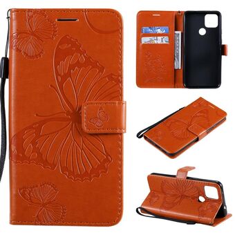 For Google Pixel 4A 5G 3D Butterflies Embossing Pattern Horizontal Flip Leather Case with Holder & Card Slot & Wallet & Lanyard(Orange)