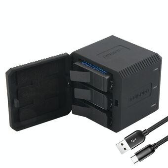 RUIGPRO USB Triple Batteries Housing Charger Box with Cable & Indicator Light for GoPro HERO9 Black / HERO10 Black(Black) (RUIGPRO)