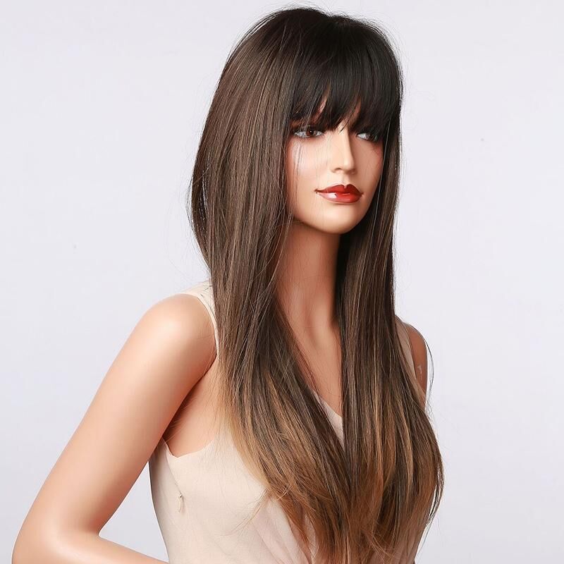 Βαθμιδωτή μακριά ίσια μαλλιά Χημικές ίνες υψηλής θερμοκρασίας μεταξωτή περούκα με αγκράφες, χρώμα: LC5067