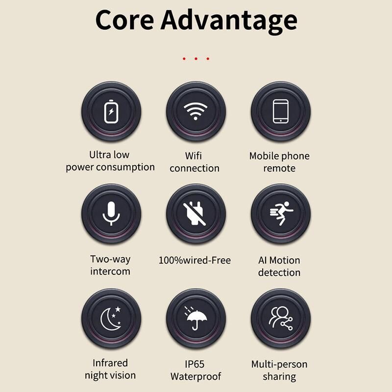 4. Built-in infrared LED+PIR sensor, support infrared night vision, clear and visible pictures at night, PIR motion detection, human detection, APP remote active wake-up.