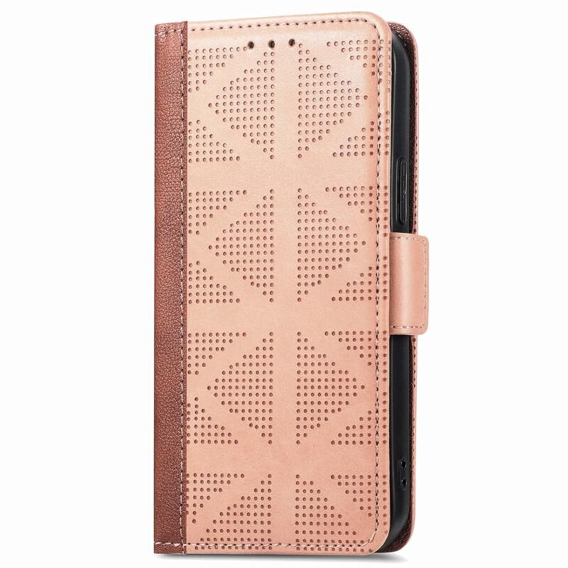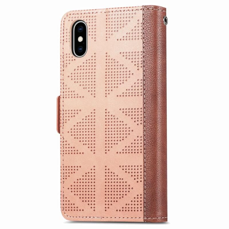 Θήκη Τηλεφώνου Πτυσσόμενη από Δέρμα με Διχτυωτό Σχέδιο για iPhone XS / X (Βερίκοκο)
