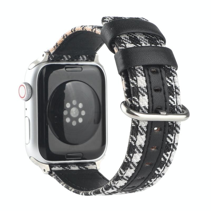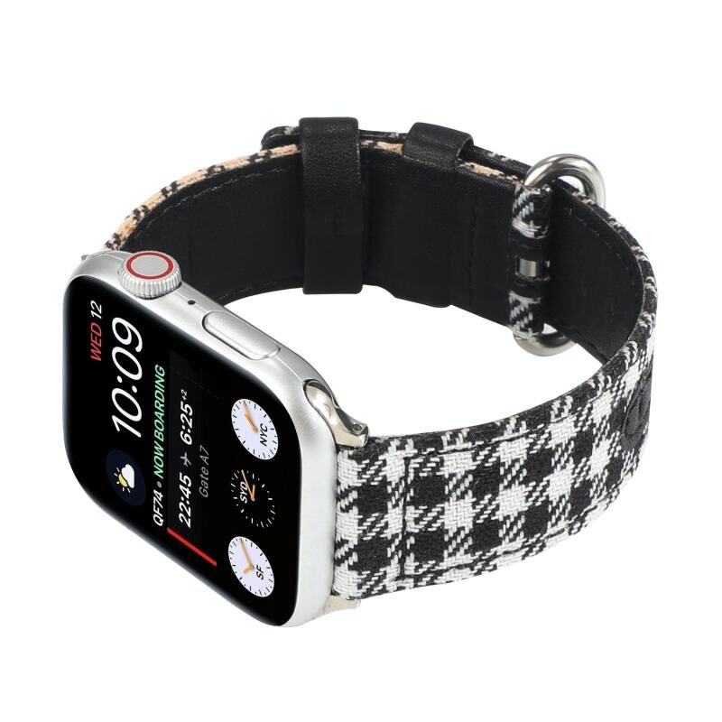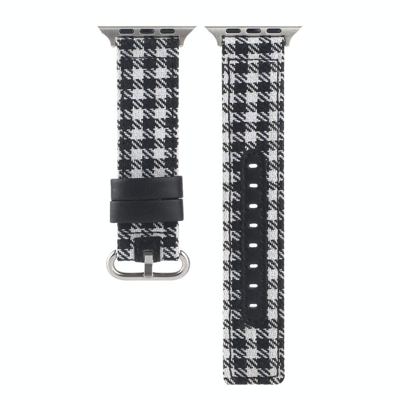 Grid Pattern Round Buckle Leather Watch Band For Apple Watch Series 7 41mm / 6 & SE & 5 & 4 40mm / 3 & 2 & 1 38mm(White Black)