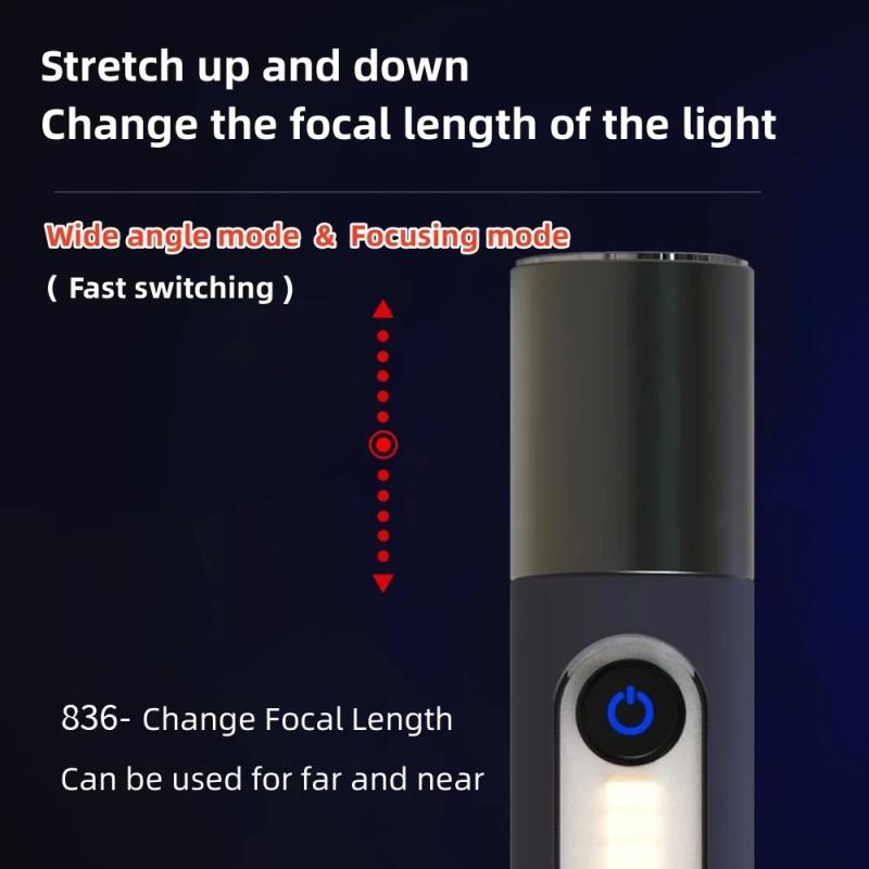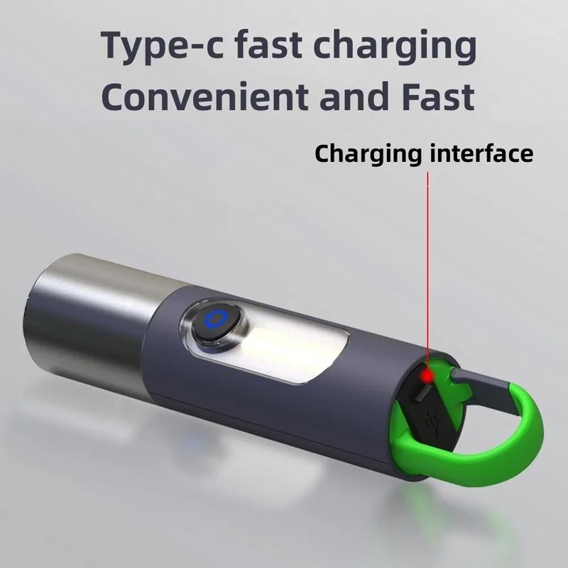 4. Ελεύθερη εναλλαγή τεσσάρων τρόπων φωτισμού, λειτουργία υψηλής φωτεινότητας, λειτουργία μέτριας φωτεινότητας, λειτουργία διαδοχικής λάμψης, λειτουργία πλευρικού φωτός, γρήγορη φόρτιση Type-C, βολική, μεγάλη διάρκεια ζωής