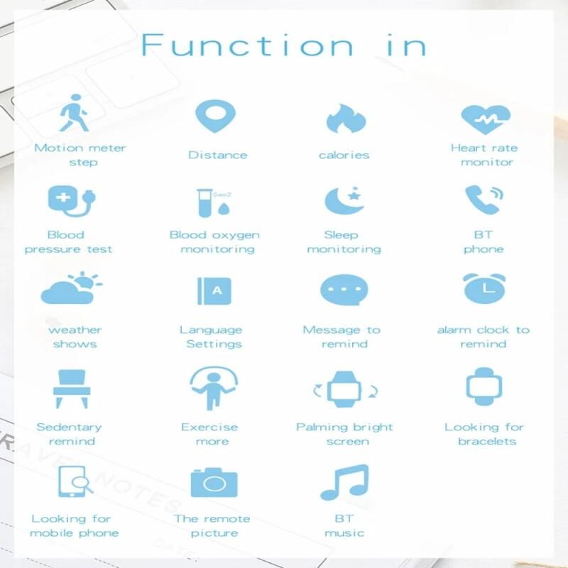 5. Bluetooth answer call, bluetooth dial call, messages reminder,alarm clock, weather, music remote, camera remote