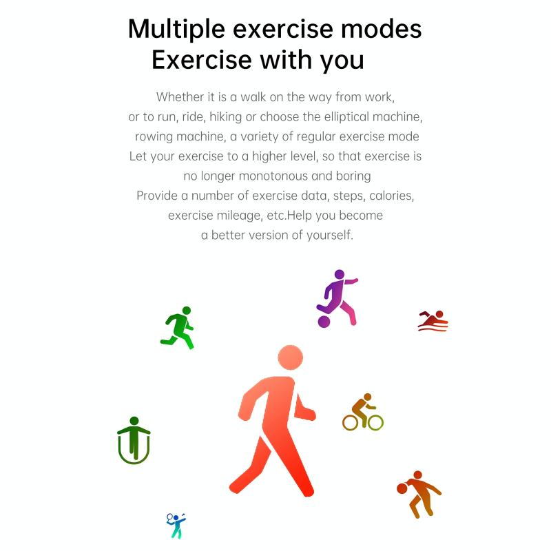 14. Functions: pedometer, calories, sleep monitoring, alarm clock reminder, dial-up call, call rejection, stopwatch, multi-sports mode, sedentary reminder, call reminder, SMS reminder, remote camera, music control, etc.