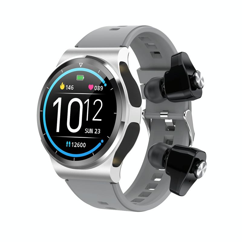 GT69 1.3 inch IPS Touch Screen IP67 Waterproof Bluetooth Earphone Smart Watch, Support Sleep Monitoring / Heart Rate Monitoring / Bluetooth Call(Silver Black)
